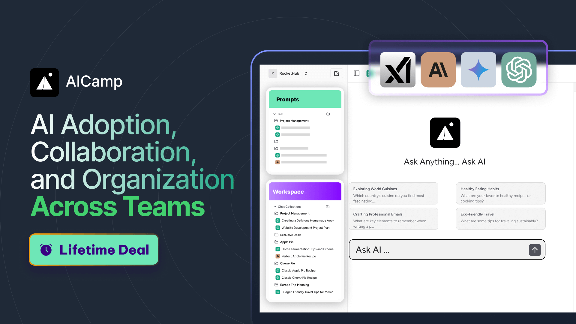 AICamp enables teams to access all top-tier AI & LLMs for quicker adoption, increased productivity, and greater collaboration