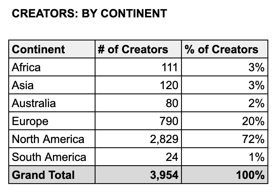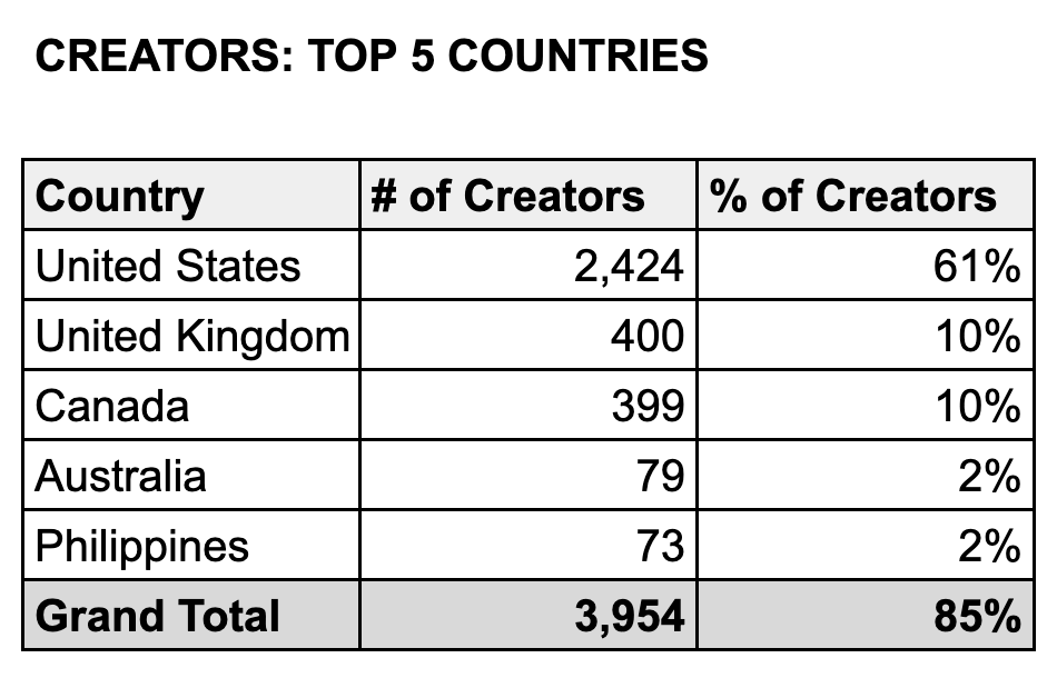 2) See FAQ #4 for detailed breakdown of all of our creators.