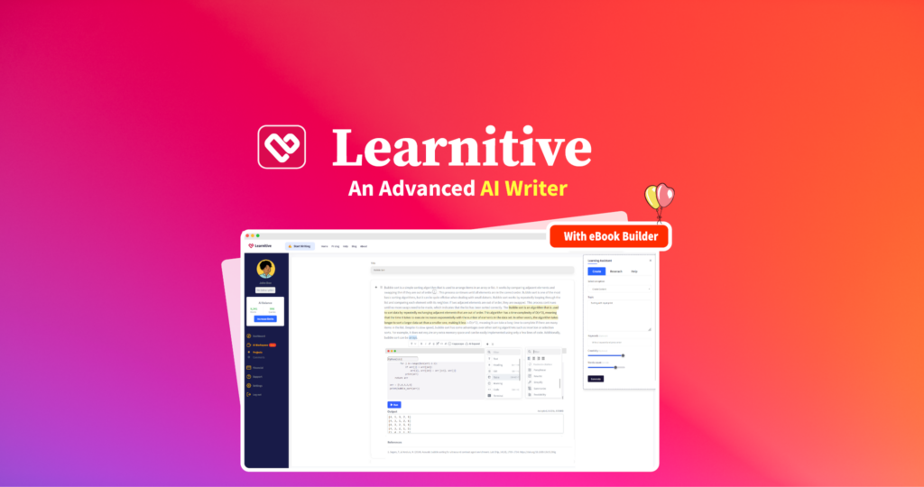 Learnitive is an AI-powered interactive writing platform with APIs, Plugins and Integration features. Long-form academic and SEO writing made easy.