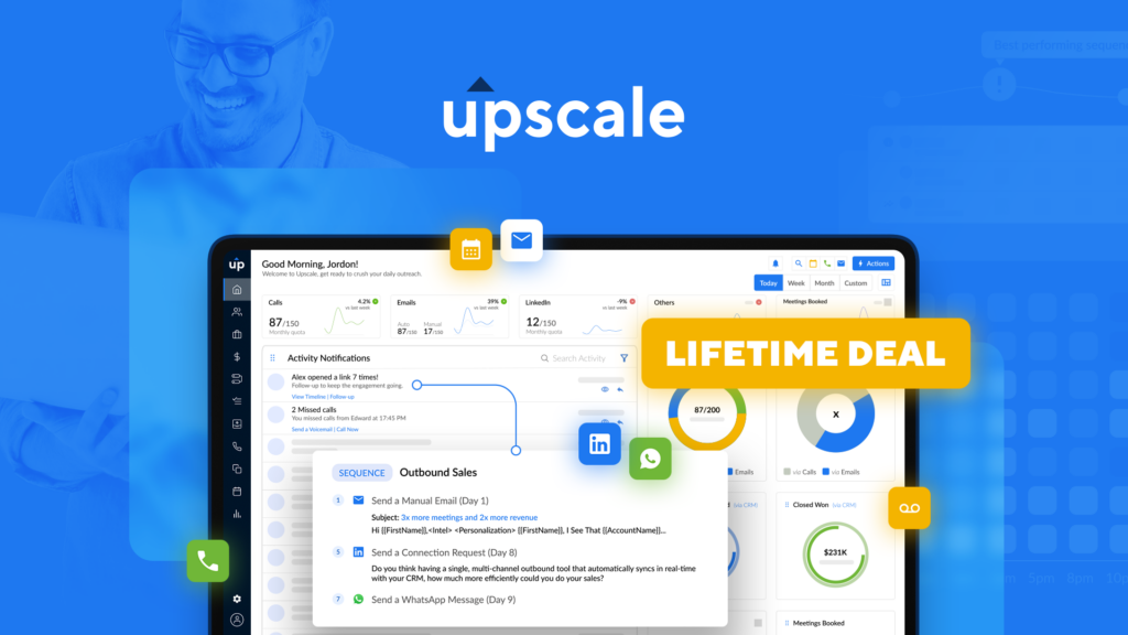 Hi Carlos, Saleshandy is primarily used for cold emails only, whereas Upscale is a multi-channel sales engagement platform. You can send emails, make calls, including LinkedIn and other touchpoints, and take notes from a single workspace — Upscale. It helps you structure your cold outreach with multi-channel sequences, event-based automation, and actionable insights.